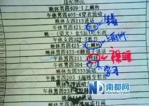 学校对学生的通报批评写得都无比详尽,具体到学生的行为甚至姿势,比如:“X班XX同学在午休时躺着用光盘照镜子”,“XX同学在床上像青蛙一样趴着向窗外看”…..