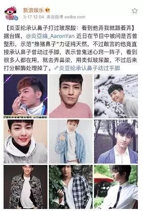 时光倒回2011年,随着飞轮海的解散,炎亚纶在大陆的人气开始下滑,还时不时因为各种负面新闻上热搜,最常见的就是整容、性取向不明、公开怼人……