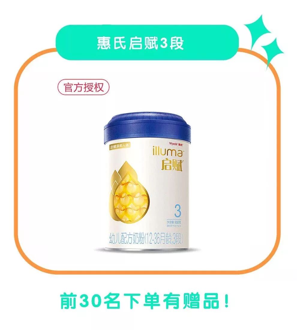 惠氏启赋系列奶粉,口碑超级好。亲和人体配方,特含专利技术OPO,灵感源于母乳成分研究,满足宝宝成长所需,助力宝宝天赋尽显。