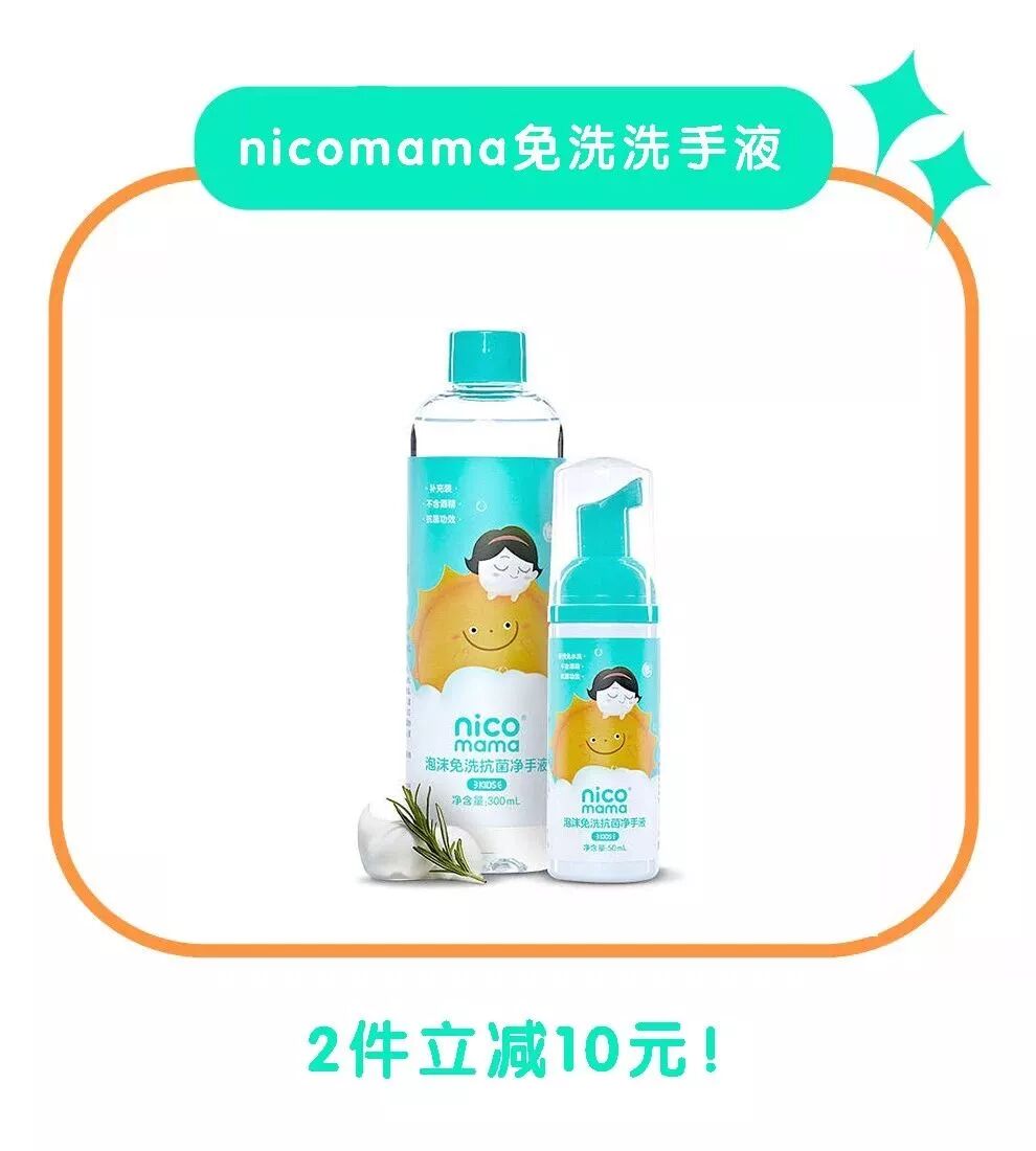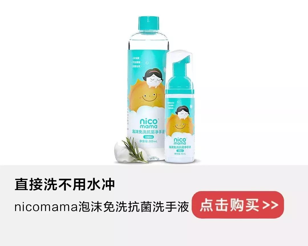 备一瓶nicomama泡沫免洗抗菌洗手液,能消灭99.9%的细菌。
