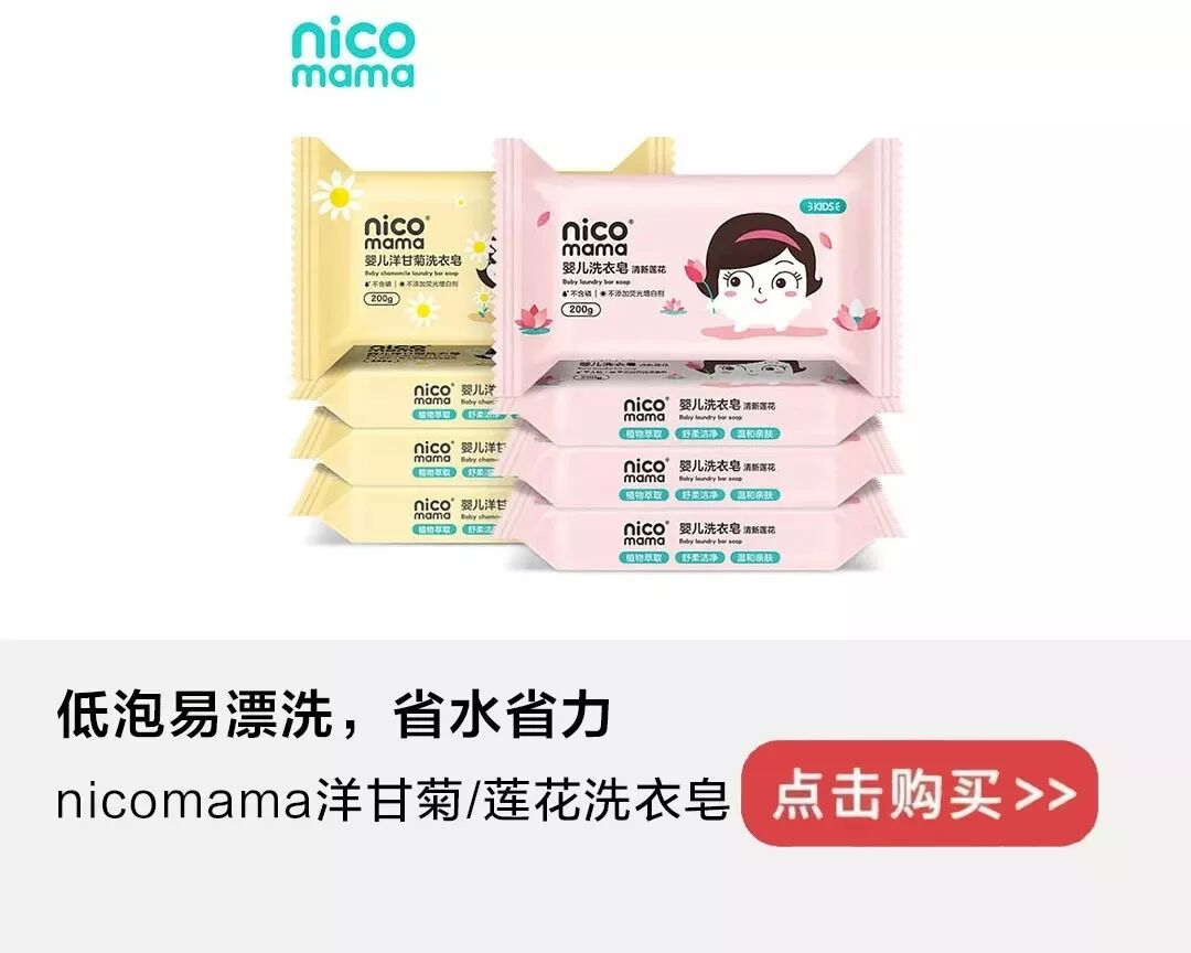 所以咱们开发nicomama婴儿洗衣皂,不添加防腐剂、色素、香精、荧光剂、漂白剂。