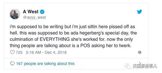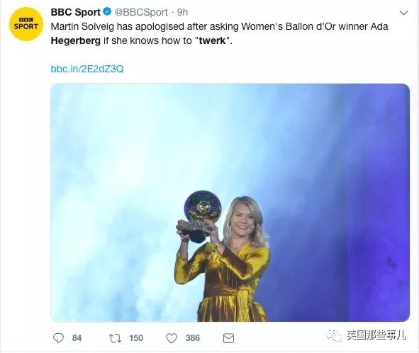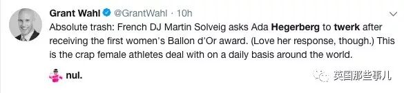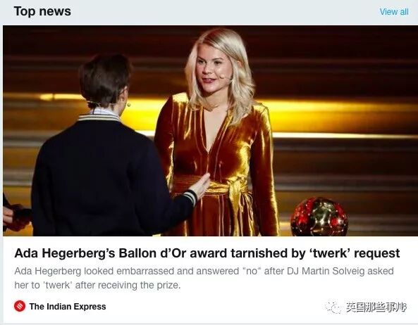 “我原本应该去赶稿,但现在坐在这儿气的说不出话来!这对于Hegerberg来说本是如此特殊的一天,这是她一直努力得来的最高荣耀。可现在所有人都在议论她被一个辣鸡要求跳电臀舞的事情!”