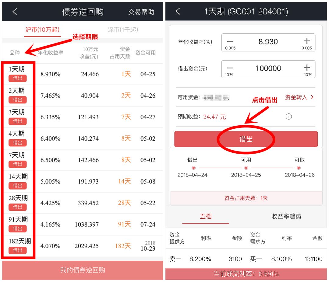 通俗来讲,在股票账户中,将资金通过国债回购市场拆出,以约定的利率出借资金,并在约定时间获得本钱和利息。其实就是一种短期贷款,即你把钱借给别人,获得固定利息;而别人用国债作抵押,到期还本付息。