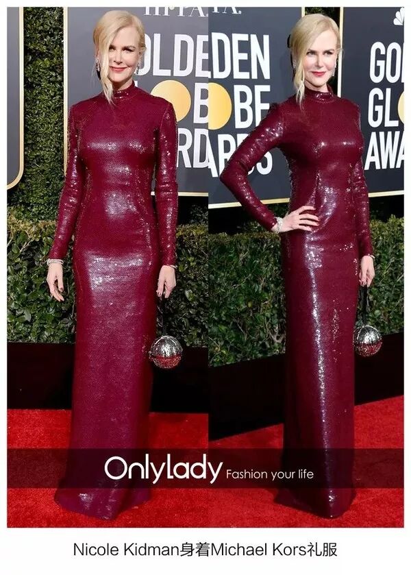 50+的Nicole Kidman身着Michael Kors酒红色亮片礼服,这个身材真的不要太好!
