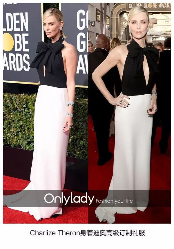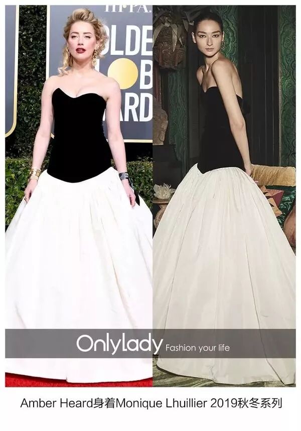 Amber Heard身着Monique Lhuillier 黑白色拼接抹胸礼裙,性感又大气。