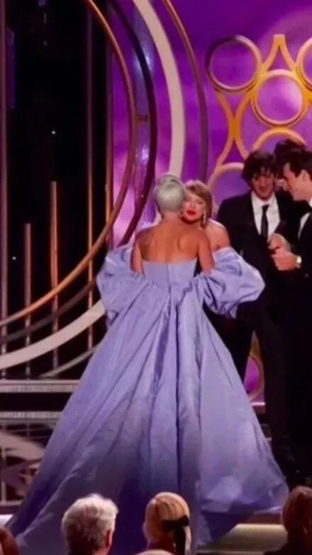 整个颁奖礼最惊喜的就是霉霉Taylor Swift给ladygaga颁奖 ,没想到两位歌唱界的天后会在影视界顶级颁奖礼上同框。