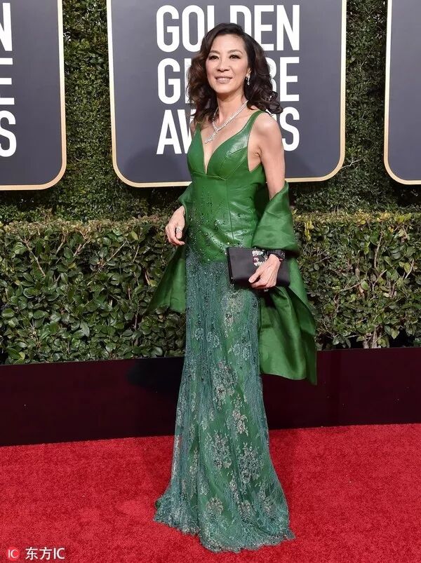 杨紫琼的这条绿色刺绣礼服来自夏姿陈的定制。