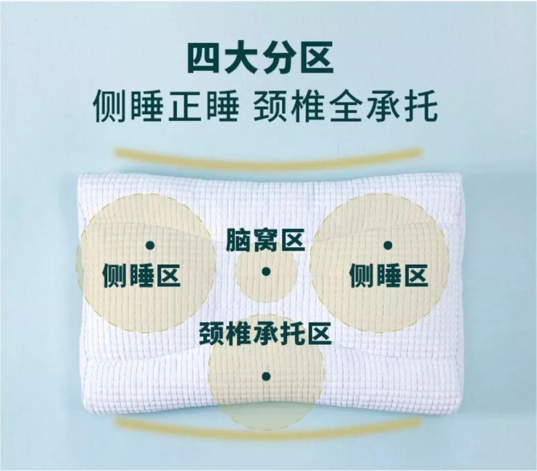 一个枕头,需要区分出仰睡区和侧睡区,本质是为了在睡眠和翻转的时候,颈椎一直保持在直线上,处于放松状态。