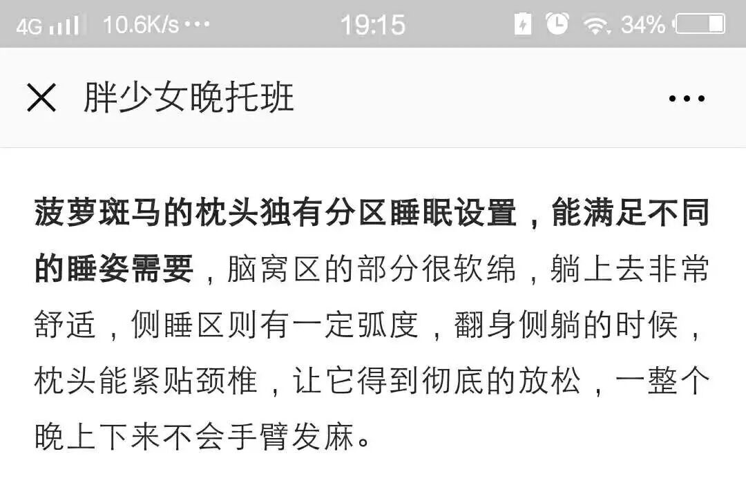 试睡了几晚菠萝斑马的枕头之后,真的明显能感觉到肩颈的酸疼感减弱了很多。 ——来自新氧