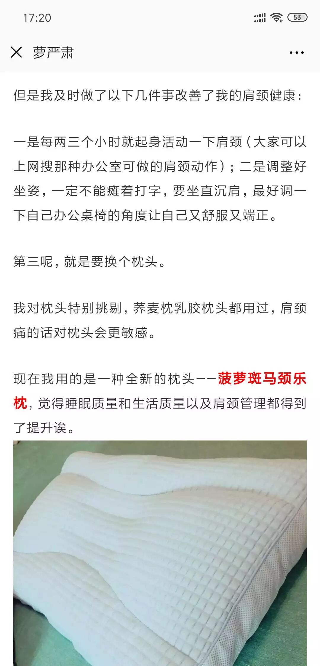 娱乐大V萝贝贝由于工作原因长期伏案,一段时间后脖子非常难受,影响了日常的工作效率。除了进行必要颈肩活动之外,更是对枕头进行了非常苛刻的挑选,最后发现还是菠萝斑马颈乐枕能有效的提升睡眠质量。