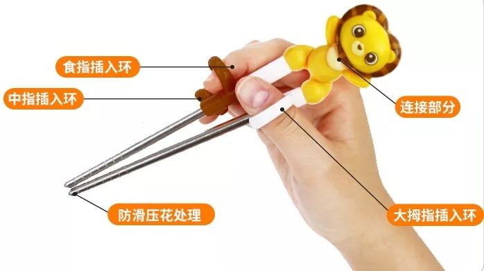 大拇指的地方还加了一块固定指环,方便初学用筷子的宝宝轻松夹起食物。