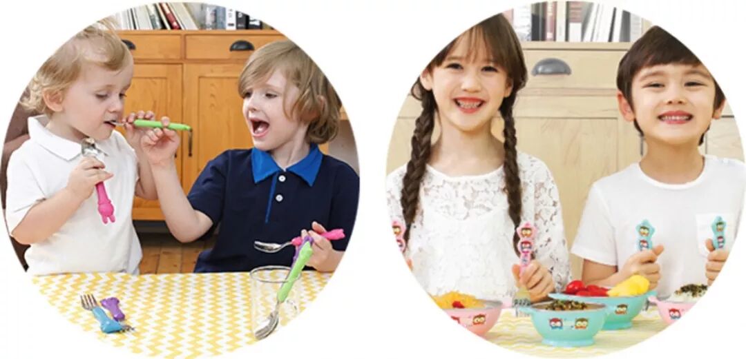 他家的儿童学习筷、勺子、叉子餐具等都深受麻麻们喜爱,集齐全套可以召唤一个高颜值餐桌。