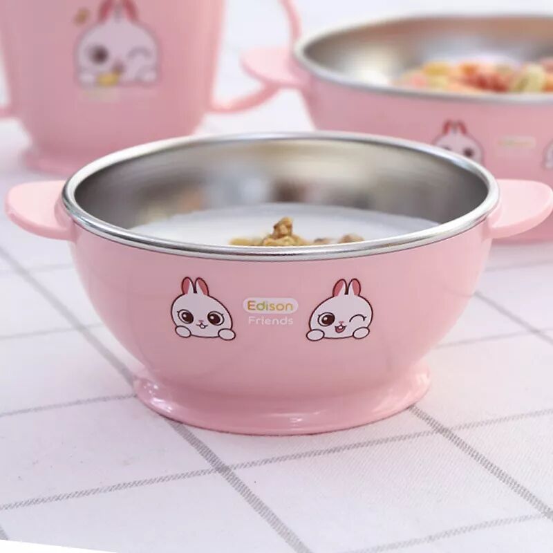 爱迪生不锈钢碗的圆形底部均匀分布着4小段防滑胶条,让小碗可以稳稳地“坐”在桌子上,不易因为孩子的随意乱动而被碰翻,还保护了碗底不被刮花。