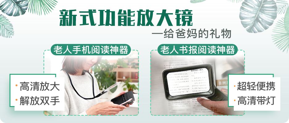 很多老人很想用智能手机,但因眼睛问题很吃力,占豪已过世的岳父就因眼疾而未能用上智能机,这也是占豪一直耿耿于怀的事。老岳父因眼病,占豪过去十几年看到好放大镜就卖给他,买好多个都不是很趁手。春节前,北京一家公司寄来他们的放大镜产品,上面都是日文英文韩文却无汉字,放大镜很有特点,非常高清,一问情况原来产品因价高以前不卖国内,都出口到美日欧等发达国家了。现在,想打国内市场,于是找占豪来了。占豪平台只卖国货,是不可能卖都是日文英文韩文产品的,于是厂家又重新做了包装才得以上架。这两款产品是从多款产品中挑选出来性价比最好最实用的。一款是适合老人看手机的放大镜,挂在脖子里可以解放双手,非常棒,价格经与厂家谈判定在了139元;另一款是带LED灯的可多档调光、超级轻便的读书看报放大镜,这款放大镜特别适合老人纸面阅读,价格经多轮谈判后定在189元。【睿意生活馆】只卖国货精品,并一定会给战友们争取更高性价比!