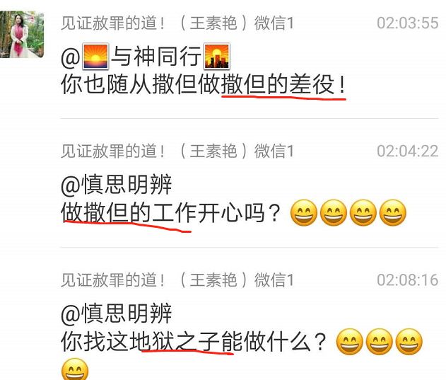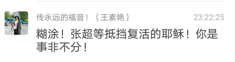 或许王姊妹以为,跟慎思明辩姊妹之间观点不同,根本无法交流。我们无法强求别人完全接受自己的观点,但是观点不同的人,也当理性交流、文明交流,如果我们在言语中充满咒骂苦毒,就有失基督徒的体统了。